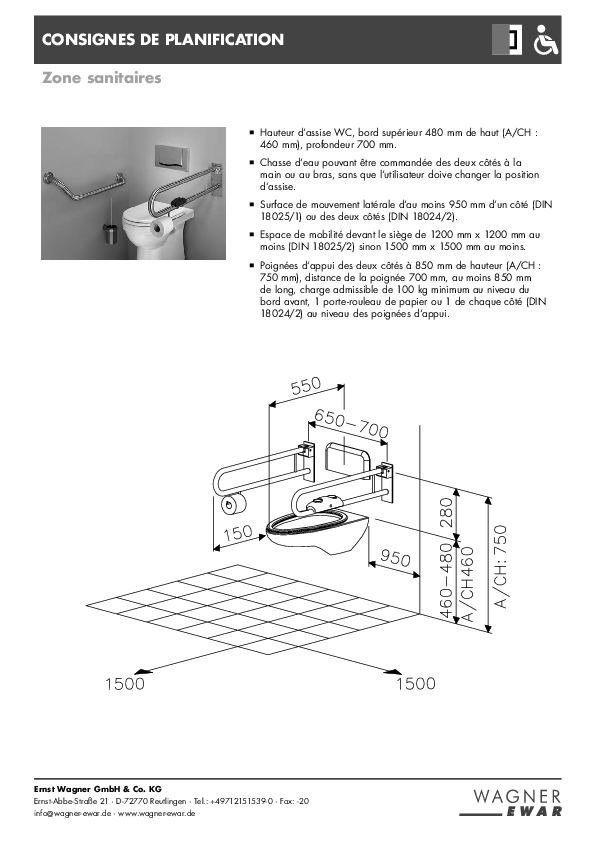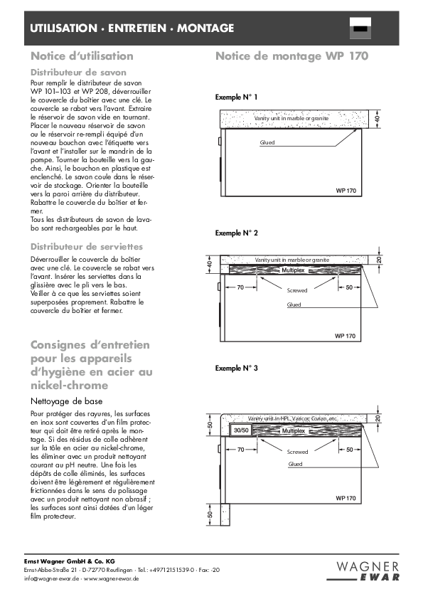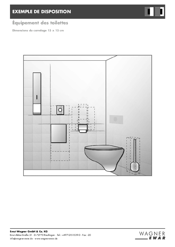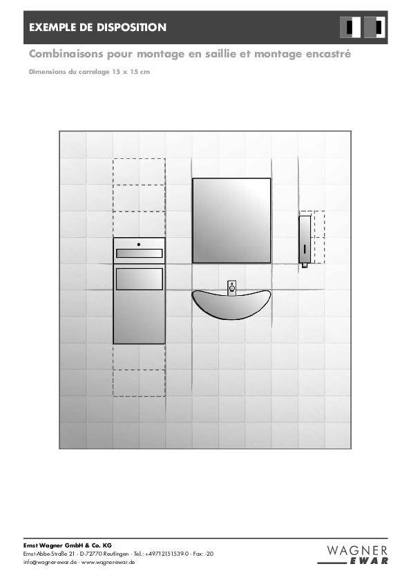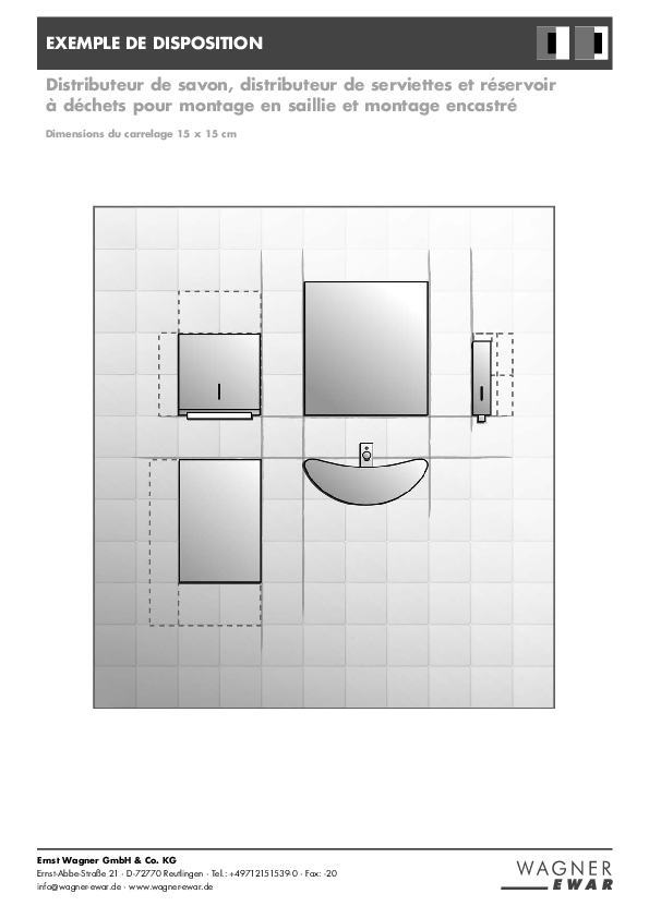 Anordnungsbeispiel für Seifenspender, Handtuchspender und Abfallbehälter für Aufputz- und Unterputzmontage