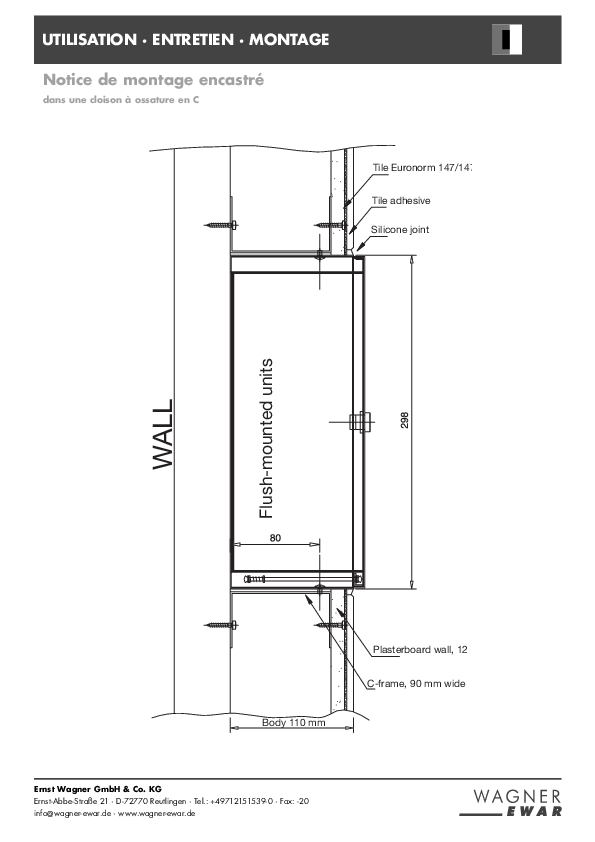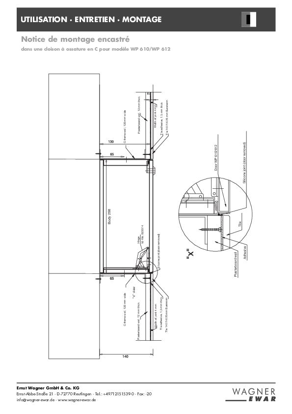 Notice de montage encastré dans une cloison à ossature en C pour modèle WP 610/WP 612