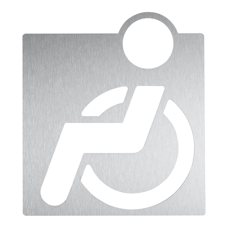 - Pittogramma con simbolo „accessibile“ in acciaio inossidabile da 2 mm di spessore (acciaio nichelato cromato WN 1.4301), satinato e spazzolato.